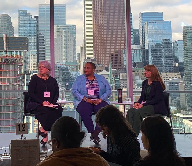 Lors de cette table ronde animée par Kathleen Sullivan, vice-présidente, Relations avec le gouvernement et l’industrie aux Aliments Maple Leaf, les participantes ont discuté des mesures prises par leur province respective pour lutter contre l’insécurité alimentaire en tant que question politique et sociale.