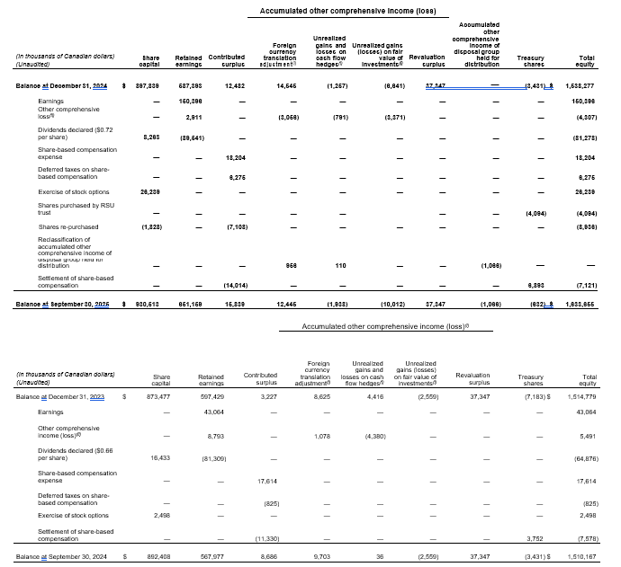 • Earnings for the third quarter of 2025 were $43.1 million ($0.35 earnings per basic share) compared to $17.7 million ($0.14 earnings per basic share) last year. Adjusted Earnings per Share(ii) for the third quarter of 2025 was $0.49 compared to $0.18 last year.